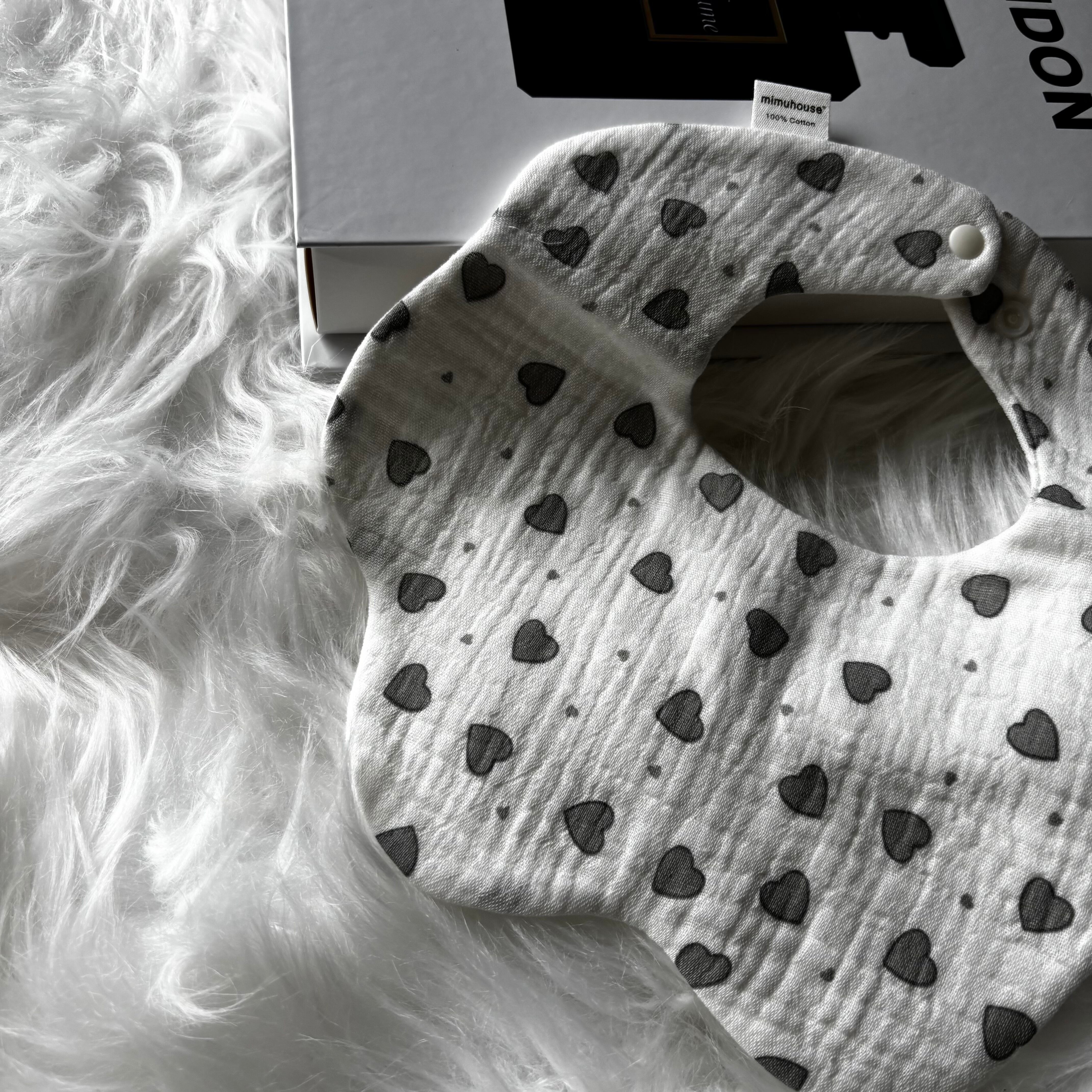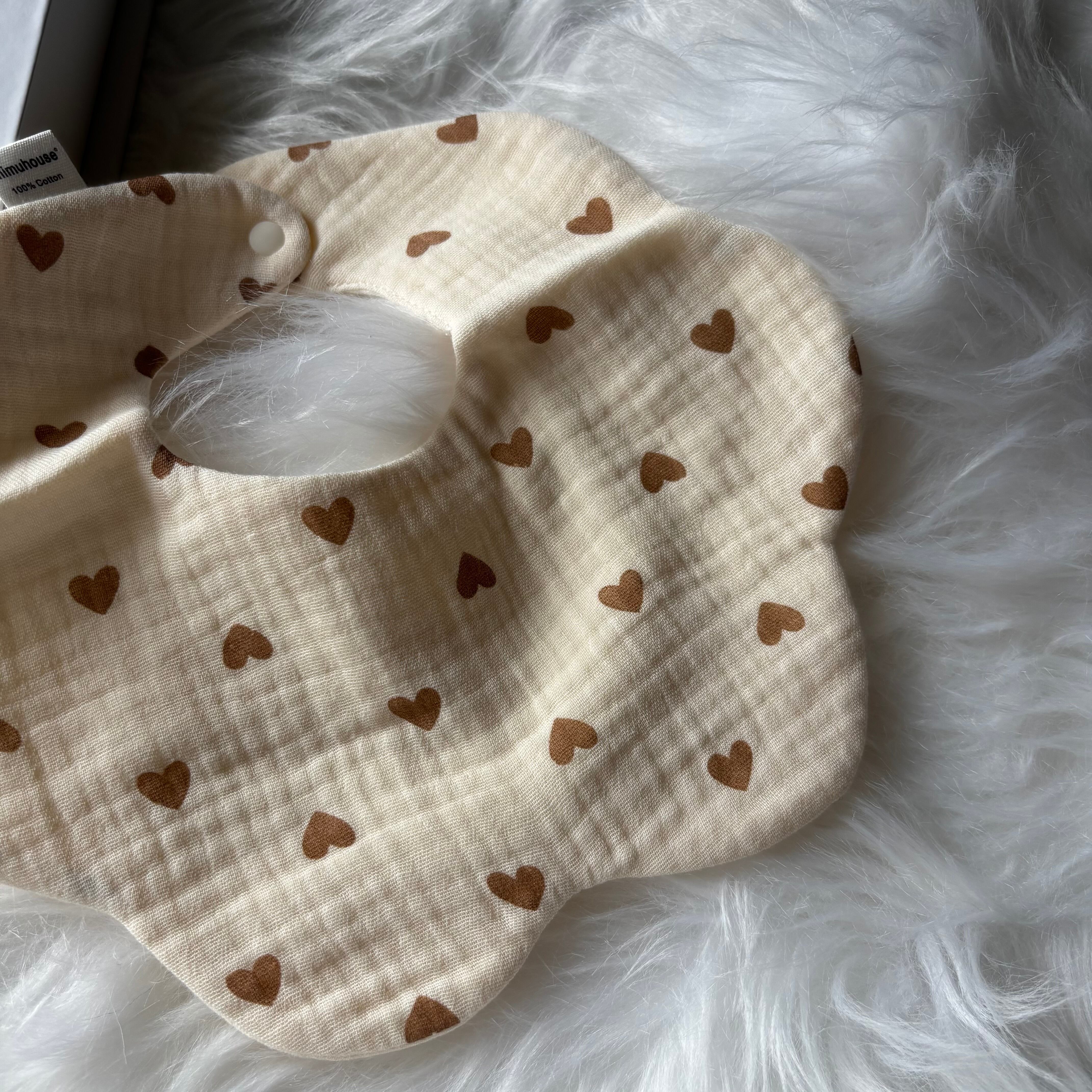 かわいらしいハート柄が特徴のスタイ!